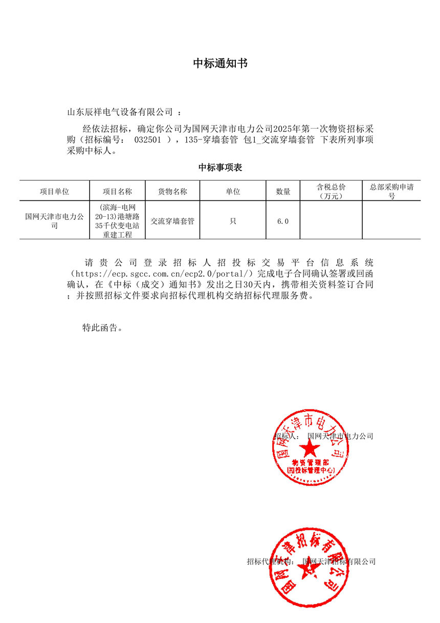 2025.01.03 交流穿墻套管中標(biāo)通知書(shū)